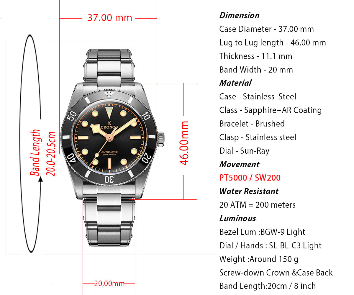 Luminous: Dial/hands are Swiss C3 green luminous and bezel insert is BGW9 super luminous (Blue)